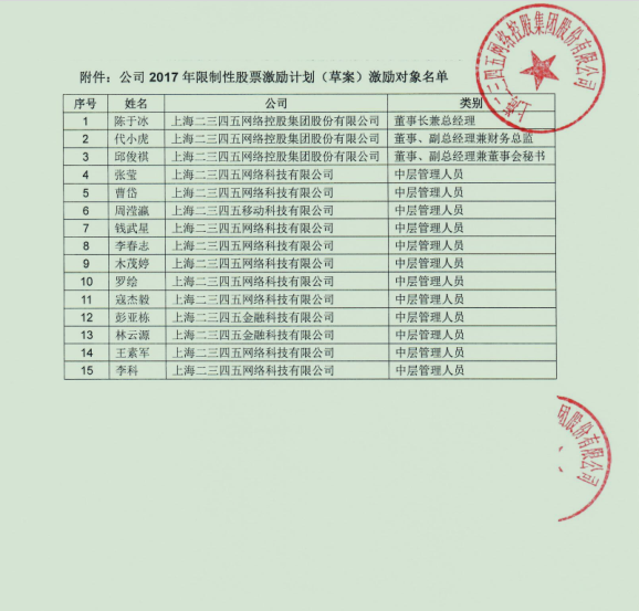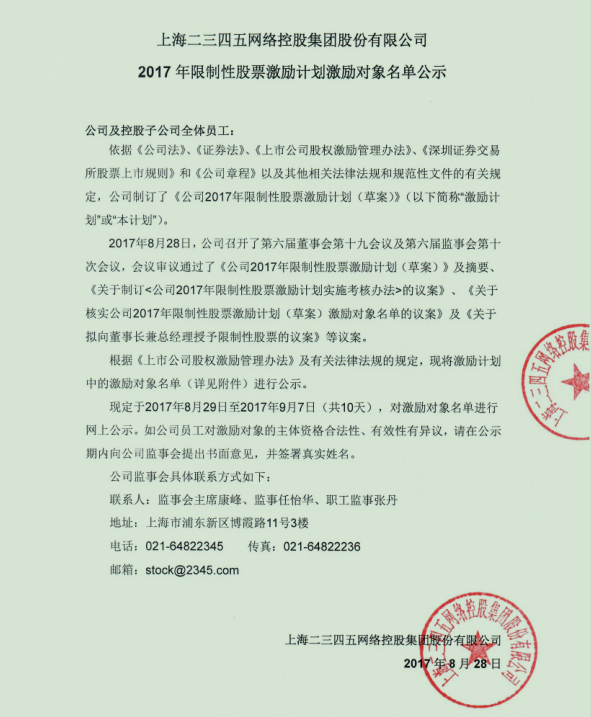 2017年限制性股票激勵(lì)計(jì)劃激勵(lì)對(duì)象名單公示