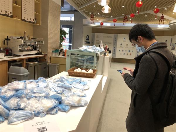 二三四五為復(fù)工人員提前準(zhǔn)備了消毒防護物品。每位進辦公樓的二三四五伙伴,可掃碼領(lǐng)