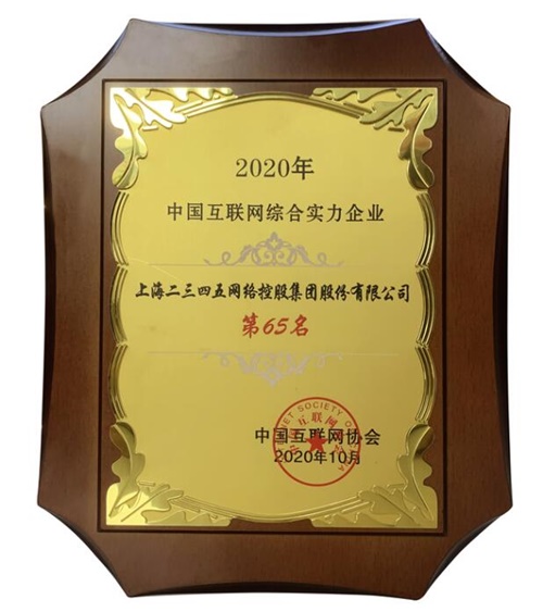 10月29日,2020年中國互聯網企業綜合實力研究報告暨百家企業高峰論壇在北京舉行,發布了“2020年中國互聯網綜合實力前百家企業”榜單,其中,上海二三四五網絡控股集團股份有限公司(股票代碼:002195)憑借強勁的綜合實力,再次榮登百強企業榜單。據悉,二三四五已連續9年蟬聯中國互聯網企業百強稱號,榮譽的加持增強了二三四五戰略發展的動力與信心。