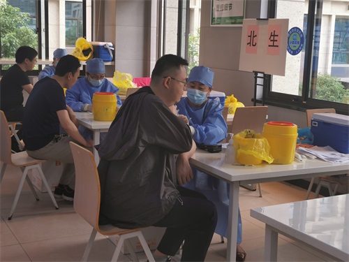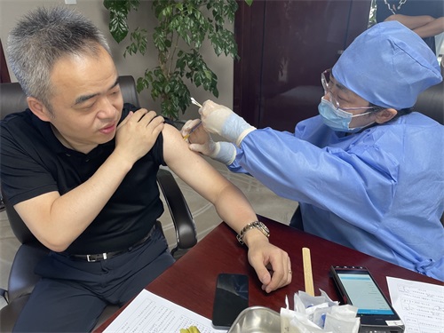 PS:咱們的管理者團(tuán)隊(duì)當(dāng)天也有積極參與疫苗接種哦~積極響應(yīng)國家號召,也為咱們員工做個(gè)榜樣,幾位管理者們率先接種了疫苗。下圖為公司董事長陳于冰先生接種疫苗中~